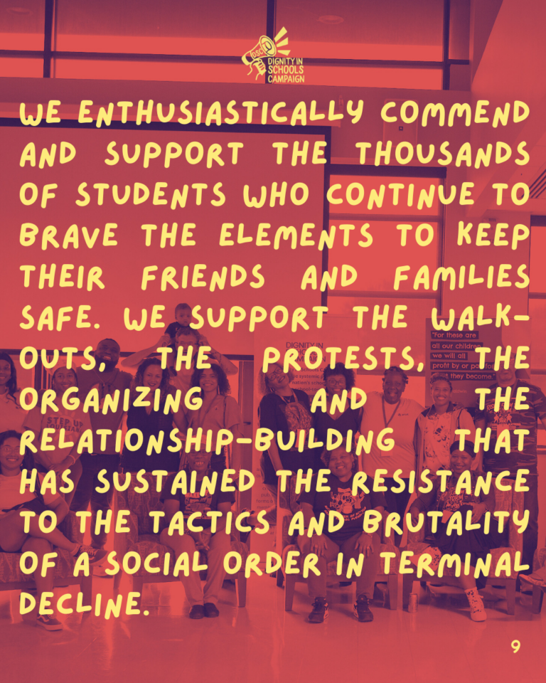 The Dignity in Schools Campaign stands in active community with students, parents, organizers and activists in Minneapolis, Portland, Chicago, Los Angeles, Santa Fe and all across the country. We can’t say for certain if Alex Pretti or Renee Good, like Silverio Villegas González and Keith Porter before them, would all still be alive today if […]