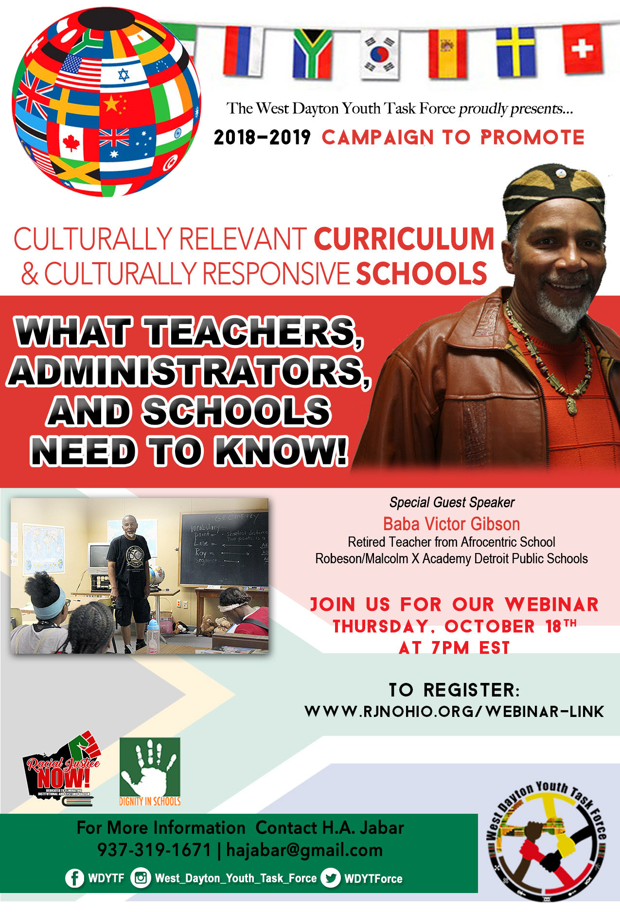 If you have questions about culturally relevant curriculum or culturally responsive schools, that you would like the presenter to answer, please email hajabar@rjnohio.org. We are collecting questions and forwarding them to Baba Victor in preparation for October 18th.